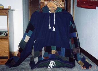 Thanks for checking out this phatty hoodie. There's a pocket on the right side and two hidden stash pockets, one in each sleeve. All the stiching is secure and durable, the hoodie is fully lined with cozy flannel, and the hood and the waist both have drawstrings. It has been worn and washed and is in great condition!
