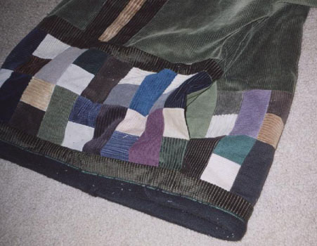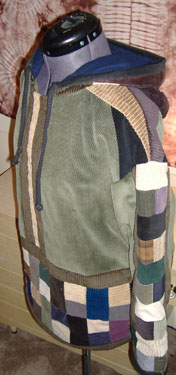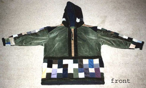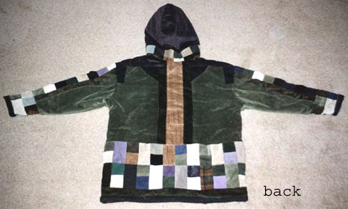 This hoodie is soOoOoOo awesome!! I'm so excited and eager to come up with more in different sizes and varied designs :) This one is all corduroy on the outside, down to every last patch, of which there are so many! All the seams are double-stiched for longevity, The entire piece is *fully lined* with soft and warm cotton flannel. The bottom and sleeve openings are binded with thick, soft fleece. The hood has a *drawstring pull* for when it gets too windy, and the hoodie has two flannel pockets sewn into the side-seams. The sizing is for smaller-framed guys or medium-framed mamas.